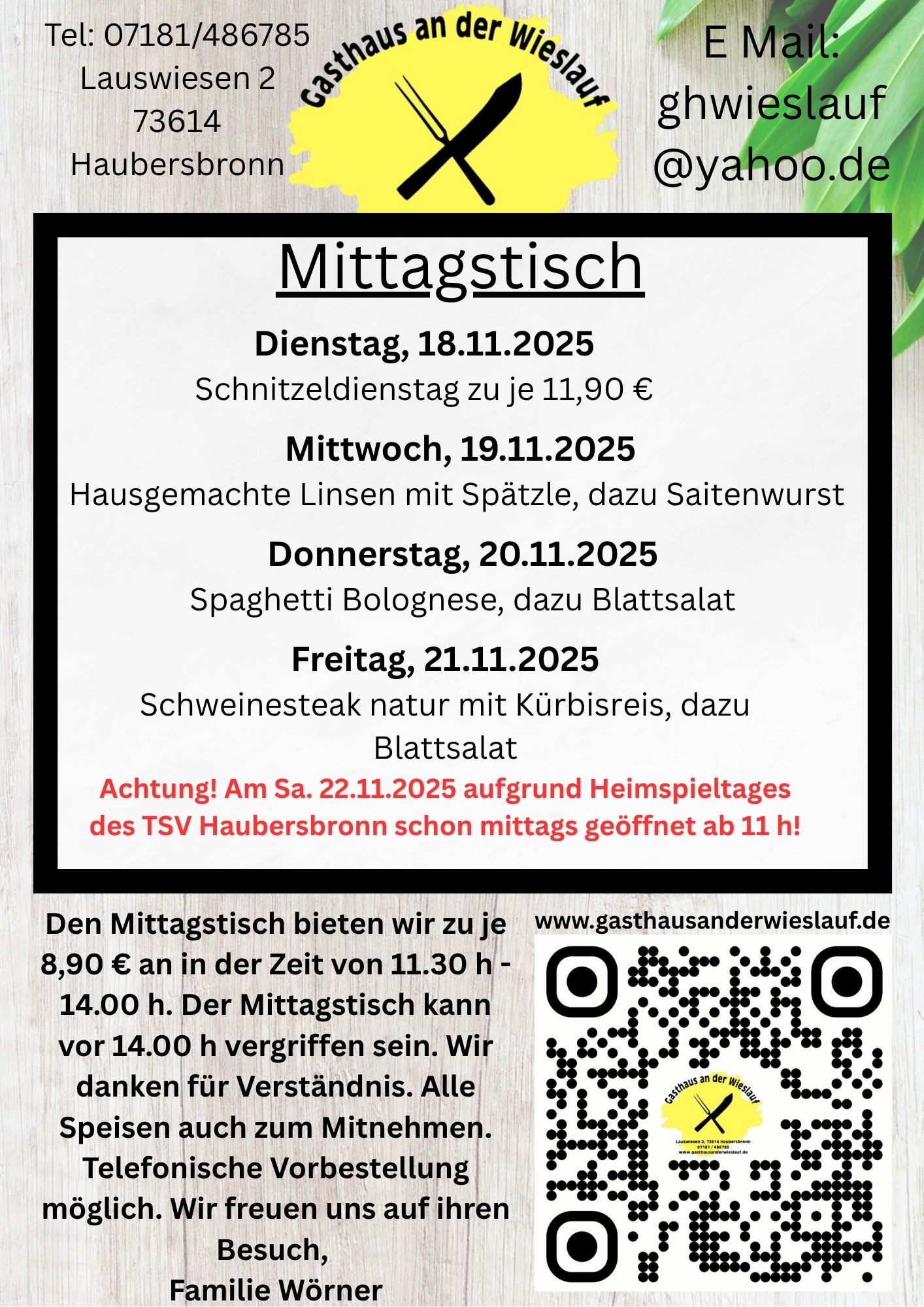 Mittagstisch Wörner`s + Gasthaus an der Wieslauf