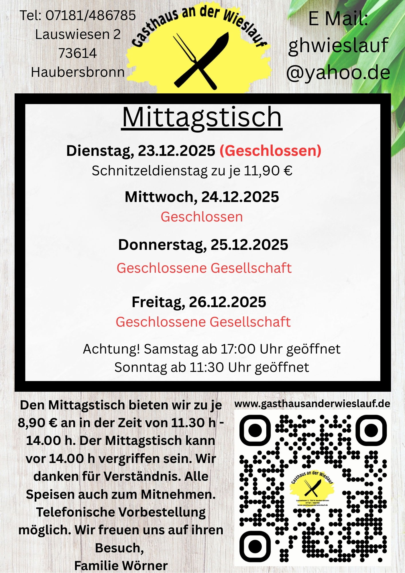 Mittagstisch Wörner`s + Gasthaus an der Wieslauf